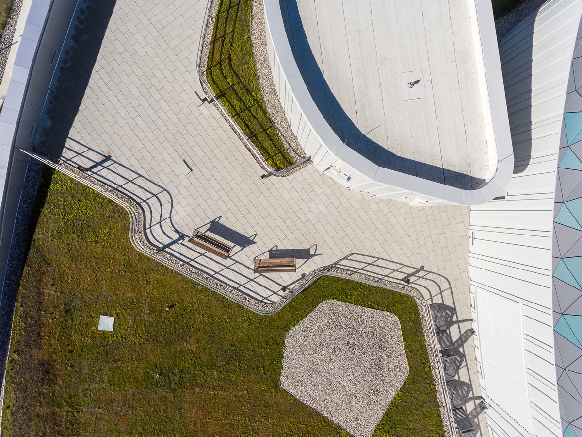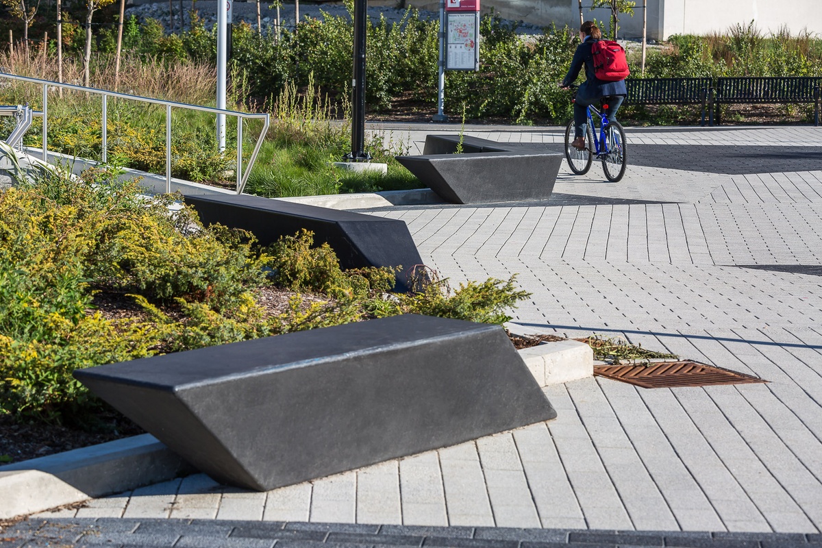 In a similar effort to mitigate a hot urban microclimate, which stems from the heating up of dark materials such as asphalt, the surrounding hardscape was specified to be a light-coloured material for a high solar reflectance to combat the heat island effect.