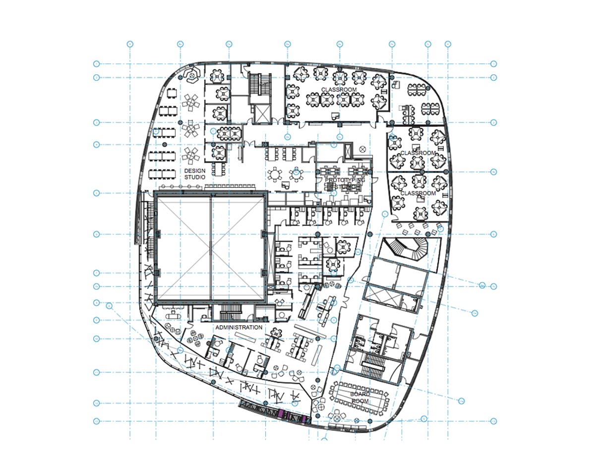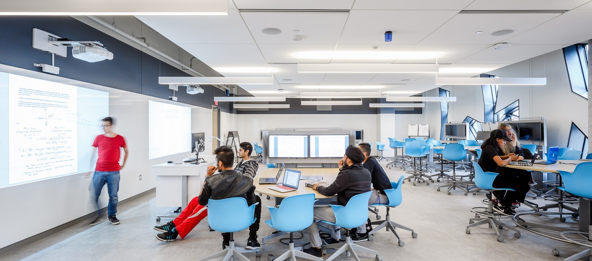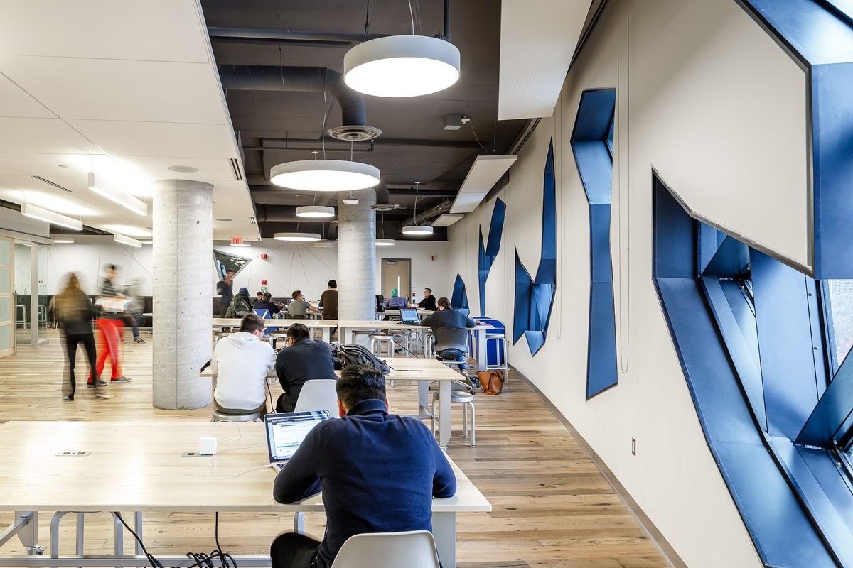The Lassonde School of Engineering has no lecture halls. Instead it hosts 18 teaching labs, 8 active learning labs as well as design workshops, studio and social spaces for undergraduate, graduate and post-graduate students, researchers and faculty to interact in an innovative and supportive learning environment.
