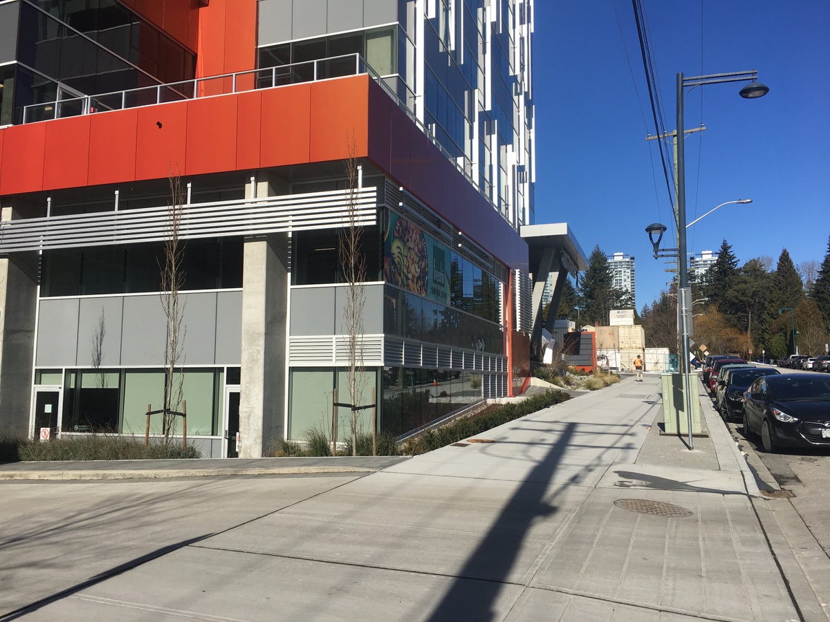Overall, CC2 is located in a dense area with many local amenities and services. To name a few, nearby amenities and services include access to the hospital, King George Skytrain Station and multiple bus stops within walking distance, businesses provided by CC1, a daycare (and a dog daycare), places of worship, many restaurants, Queen Elizabeth Secondary School, AHP Matthew Elementary, SFU, and other centres of learning, and Central City Shopping Centre. CC2 is fitted with extensive bike storage facilities and showers and provides EV charging stations for the convenience of occupants and visitors.