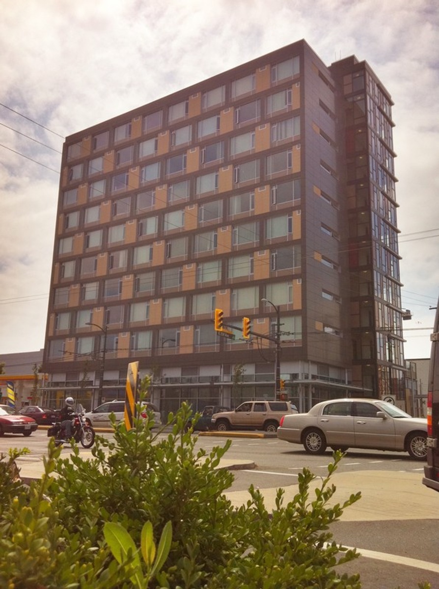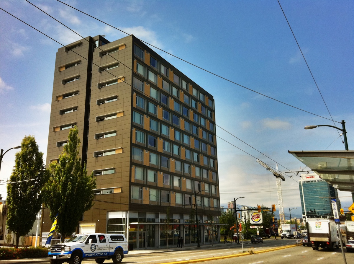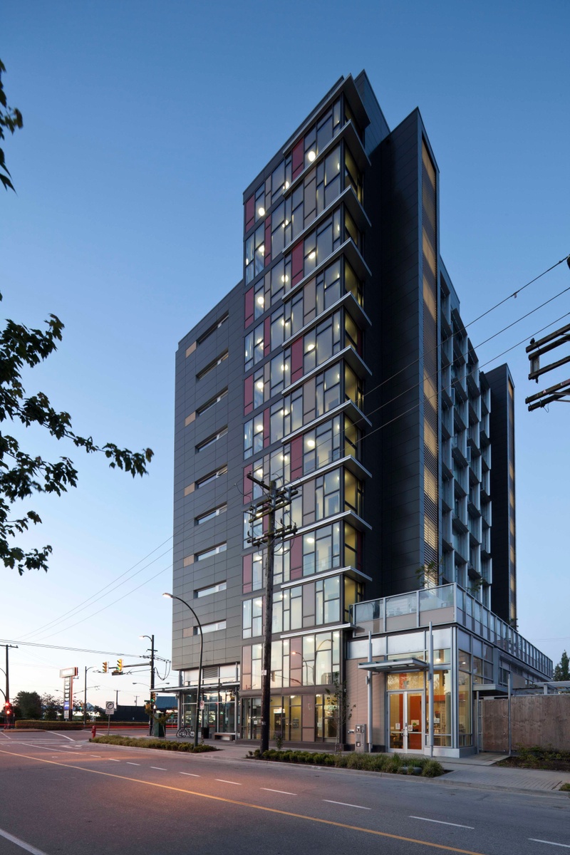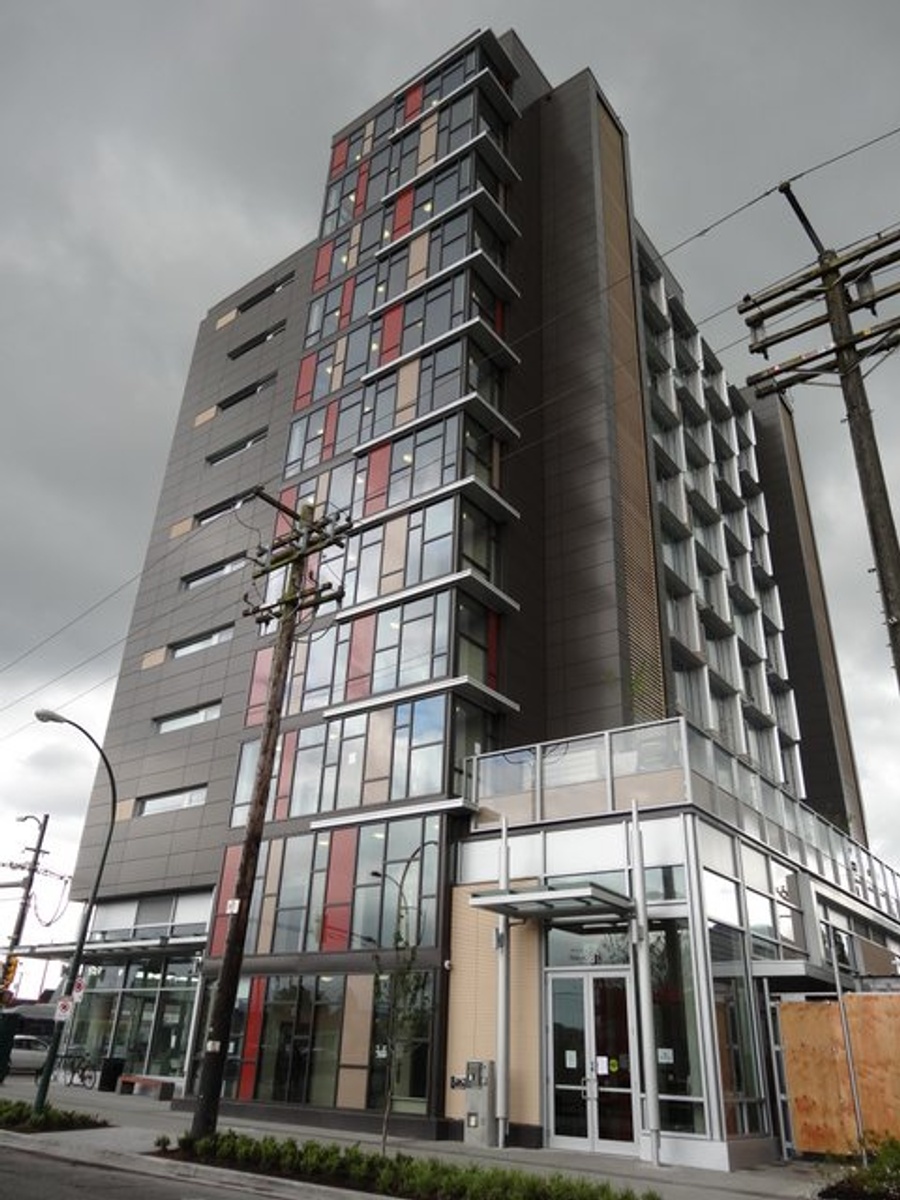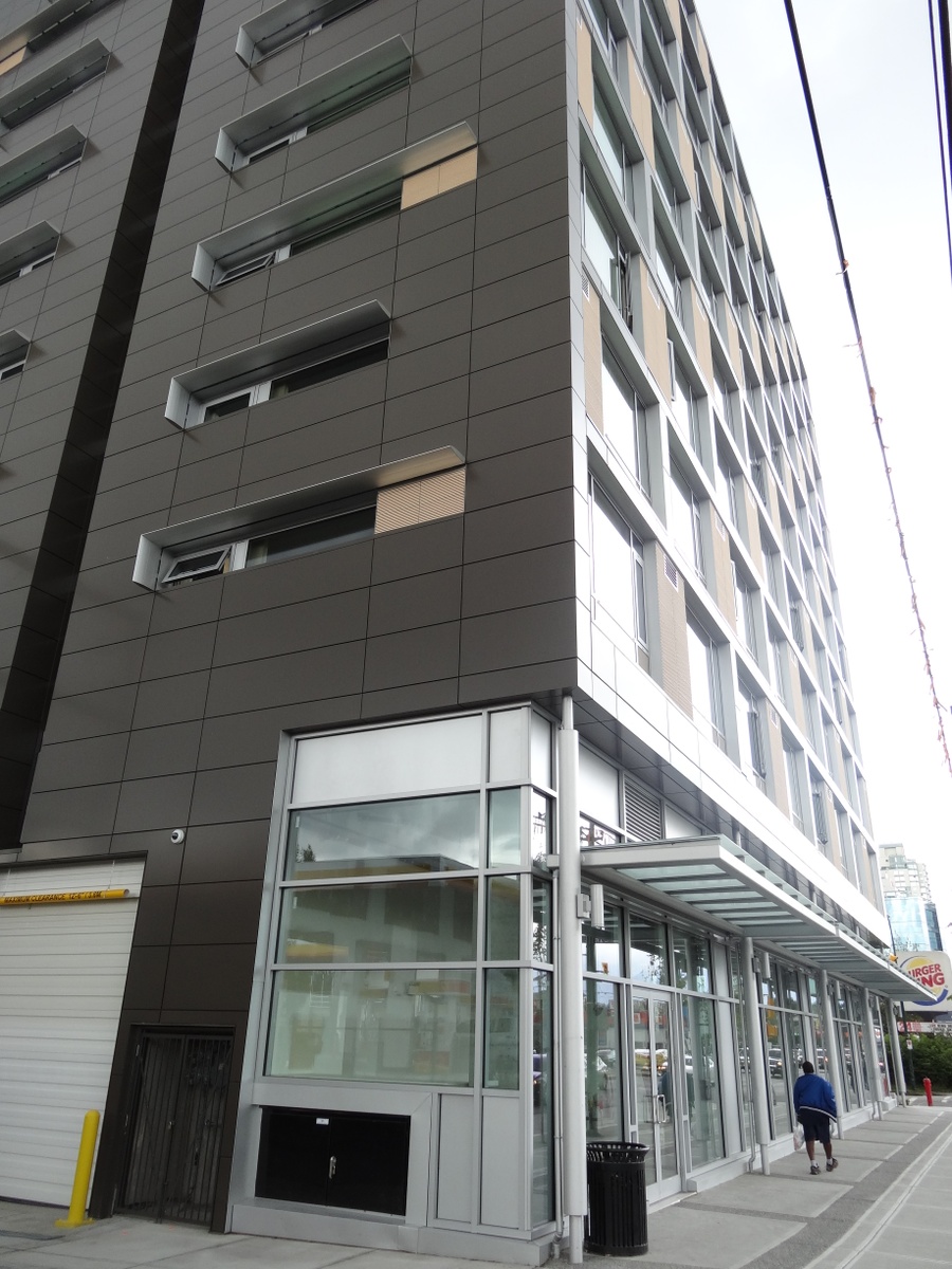 Operated by Lookout Emergency Aid Society, First Place is located at 188 East 1st Avenue. This multi-use project consists of 129 housing units in a 60,000 square foot 12-storey concrete building. The project includes below-grade parking, retail spaces as well as recreation and administration areas with integrated support services for people who are homeless or at risk of homelessness.