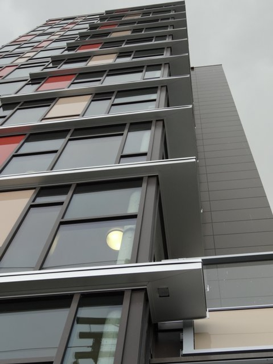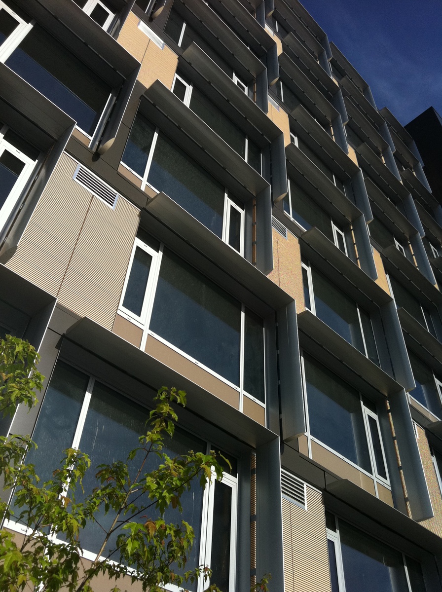 The need for light is a most human attribute. In response to this need, glazing was incorporated as much as possible to ensure substantial daylight brightens interior spaces, to create a warm ambience in individual and common areas. Natural light has been incorporated into each unit with extra height as well as into the communal living spaces and circulation with open-ended corridors. The elevator lobby on each floor offers residents views and surveillance of their surroundings. The vertical stairwells have been opened to the outside world with glazing, and the lower and upper rooftop decks provide excellent opportunities to connect to the outdoor environment for views and social interaction.