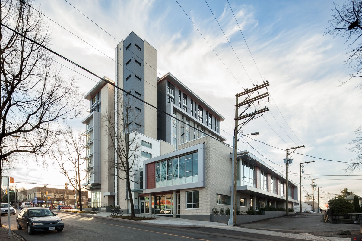 Kwayatsut is a multi-unit social housing development with ancillary support services and amenity spaces supporting youth at risk, combined with secondary use, commercial leased spaces. Constructed as part of BC Housing’s Provincial Homelessness Initiative (PHI) program. PHI was developed to provide long-term housing in the form of compact self-contained residential suites to help people who are homeless or at risk of homelessness move toward more secure housing, gain greater self-reliance, and achieve appropriate employment.