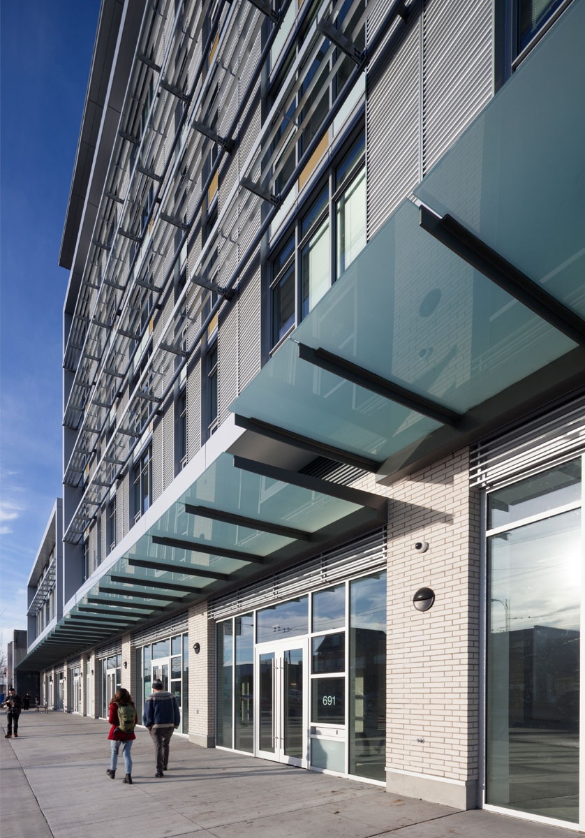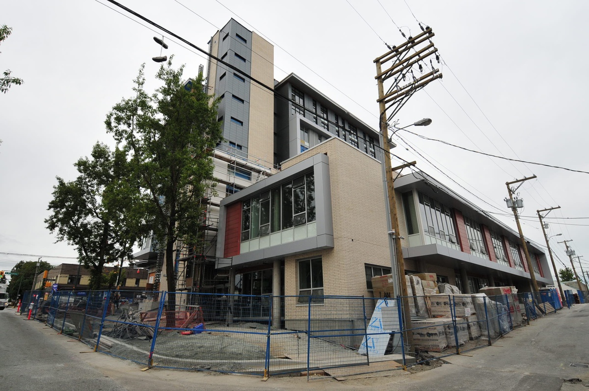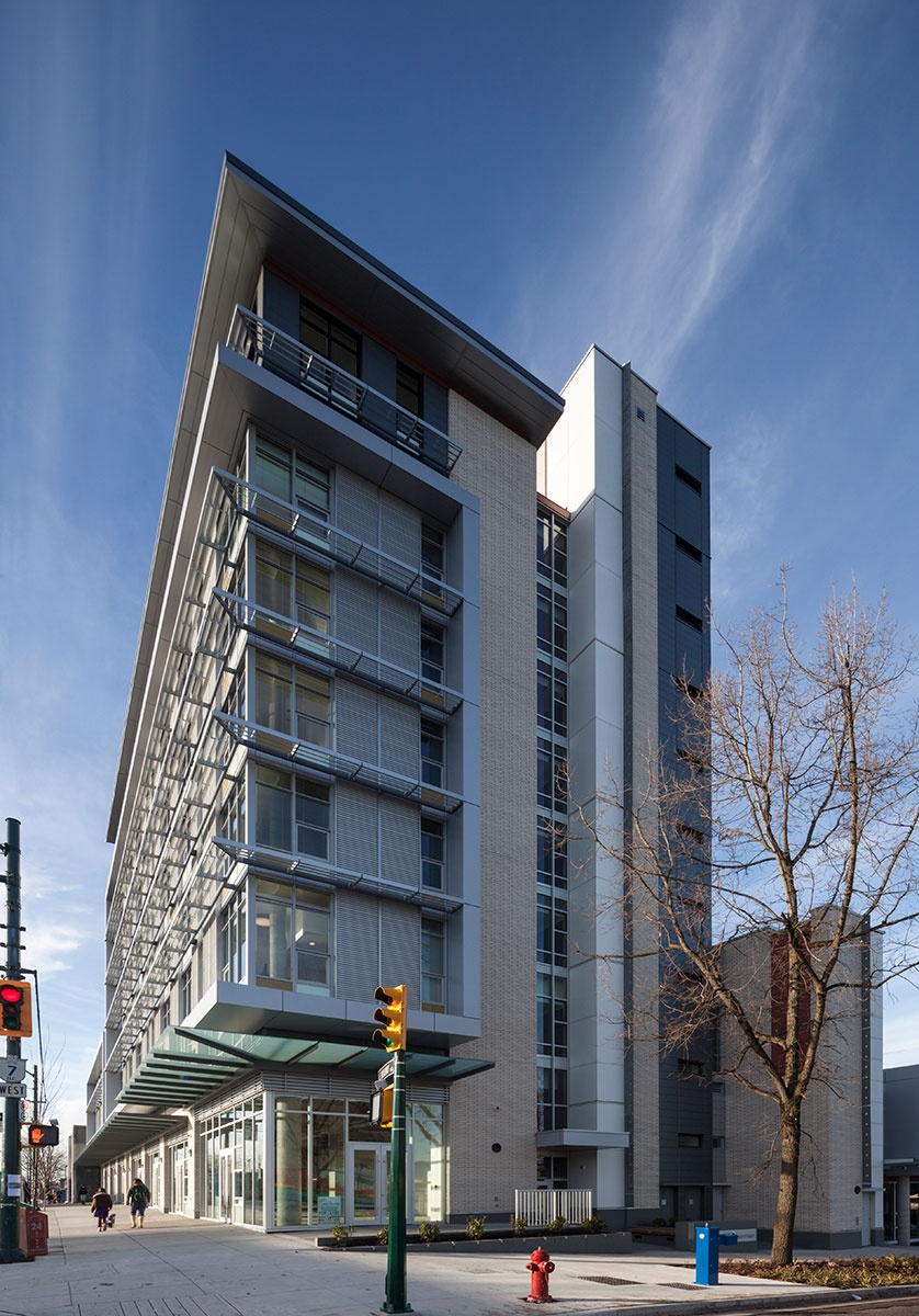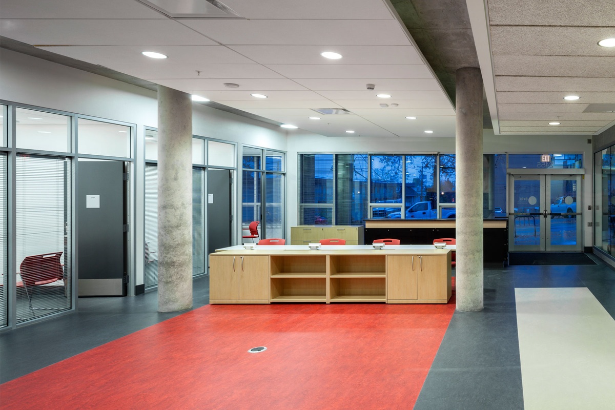 The project programming consists of subsidized rental housing with support services, a new Broadway Youth Resource Centre (BYRC) by the Pacific Community Resource service as well as a commercial/retail area. The project is owned and operated by the Vancouver Native Housing Society (VNHS), who provides tenants with a range of services. Programming run by BYRC takes place in the classrooms, art rooms and meeting rooms, on the first two levels and includes an integrated one-stop center to provide a seamless continuum of community-based social and health services to at-risk youth, ages 12 to 24.