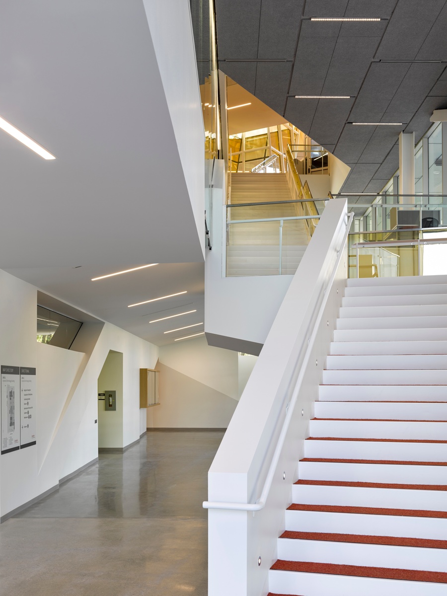 The use of building materials originating from local sources lowers the transport-related carbon footprint of the building while also supporting regional economies. Materials manufactured and harvested and extracted within regional distances were specified wherever possible, as well as products made with recycled materials.