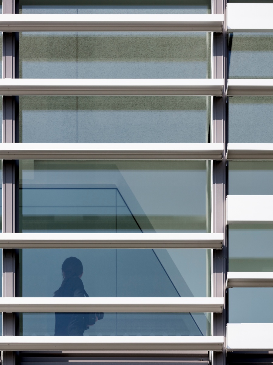 The harvesting of daylight is a multiple benefit strategy in a green building such as this. Not only do occupants enjoy a more pleasant indoor environment with quality daylight illuminating their tasks, but daylight also provides an important energy conversation strategy. Whenever there is enough daylight illumination, interior lighting is reduced or turned off with automatic daylight controls managing the balance between artificial and natural light.