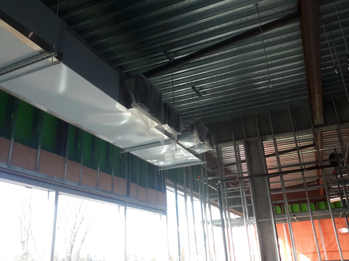 The air-handling units themselves have variable speed drives. These minimize the volume of outside air that is required to be heated, and reduces the heating loads and therefore the amount of energy used during the heating season. They also reduce wear and tear on the unit fans and allow maximum energy savings.