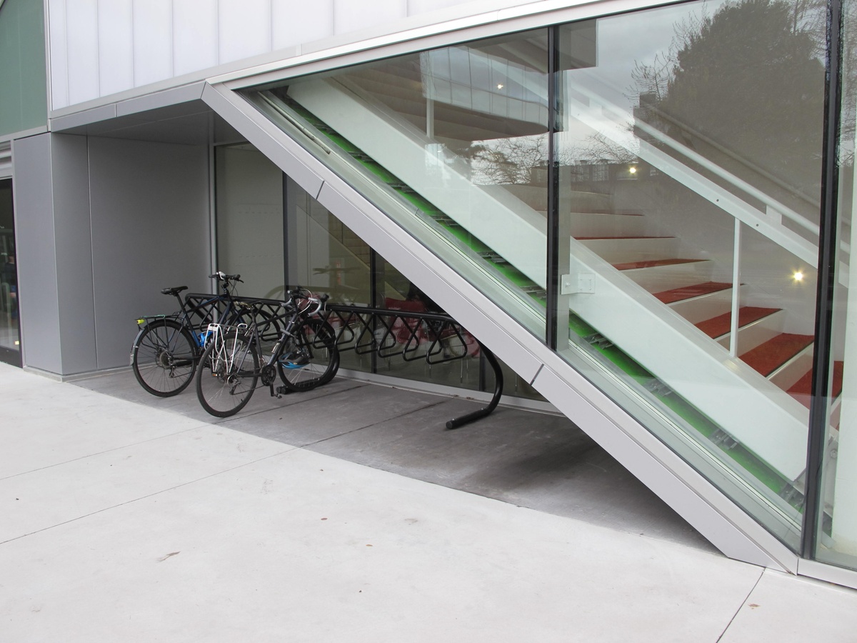Langara incorporated a number of additional strategies on site to encourage sustainable transportation. End-of-trip change rooms and secure bike storage facilities for 5% of the building occupants create an accommodating atmosphere for cycle commuters. Electric vehicle recharging stations are located in a preferred parking area to accommodate 3% of building occupants. For building users who carpool, there are preferred parking spots as well as a program to encourage this method of single occupant vehicle demand reduction. The parking area itself is less than 3.5 spaces per 93 m2 (1000 sft) and does not exceed local zoning requirements.