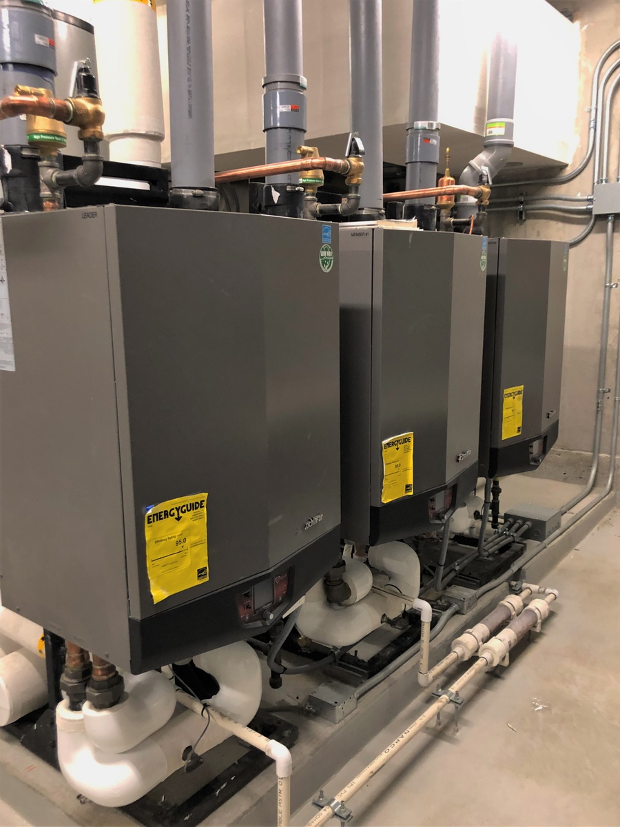 - 98% efficient condensing boilers for domestic hot water (DHW)