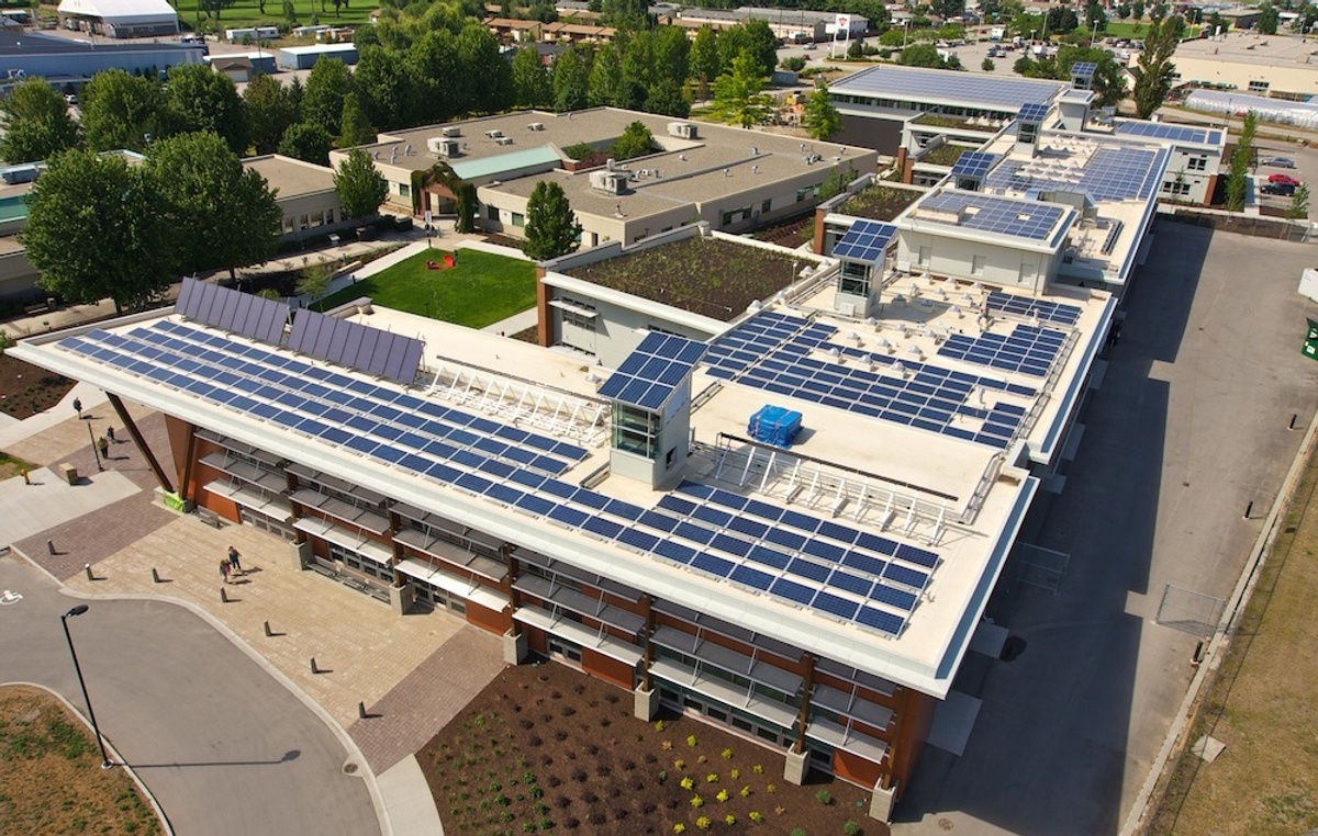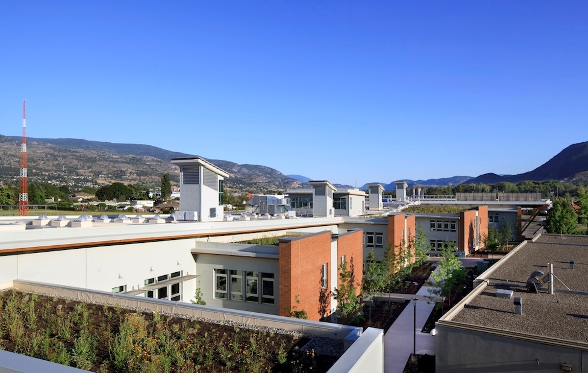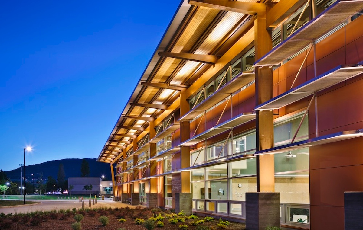 The Jim Pattison Centre of Excellence in Sustainable Building Technologies and Renewable Energy Conservation at Okanagan College is one of the greenest buildings in the world. It was designed and constructed as an innovative, sustainable post-secondary facility that is highly adapted to its site, climate and context. The facility supports a syllabus with a focus on sustainable building technologies and processes, as well as research and development of alternative and renewable sources of energy. As such, the innovative features of the building itself will be used as a teaching tool to help train the next generation of tradespeople in green construction practices.
