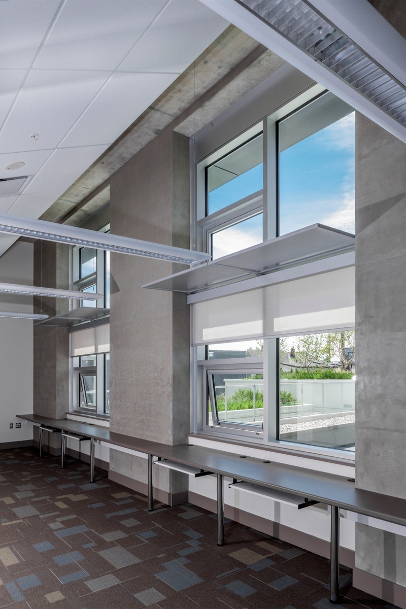 In terms of insulation, the project improved wall, roof and window conduction compared to the Model National Energy Code for Buildings (MNECB) baseline, thereby providing superior building envelope performance to save energy. In fact, the exterior wall R-value is nearly 238% higher than the MNECB baseline, with the roof R-value at 254% better than the baseline!