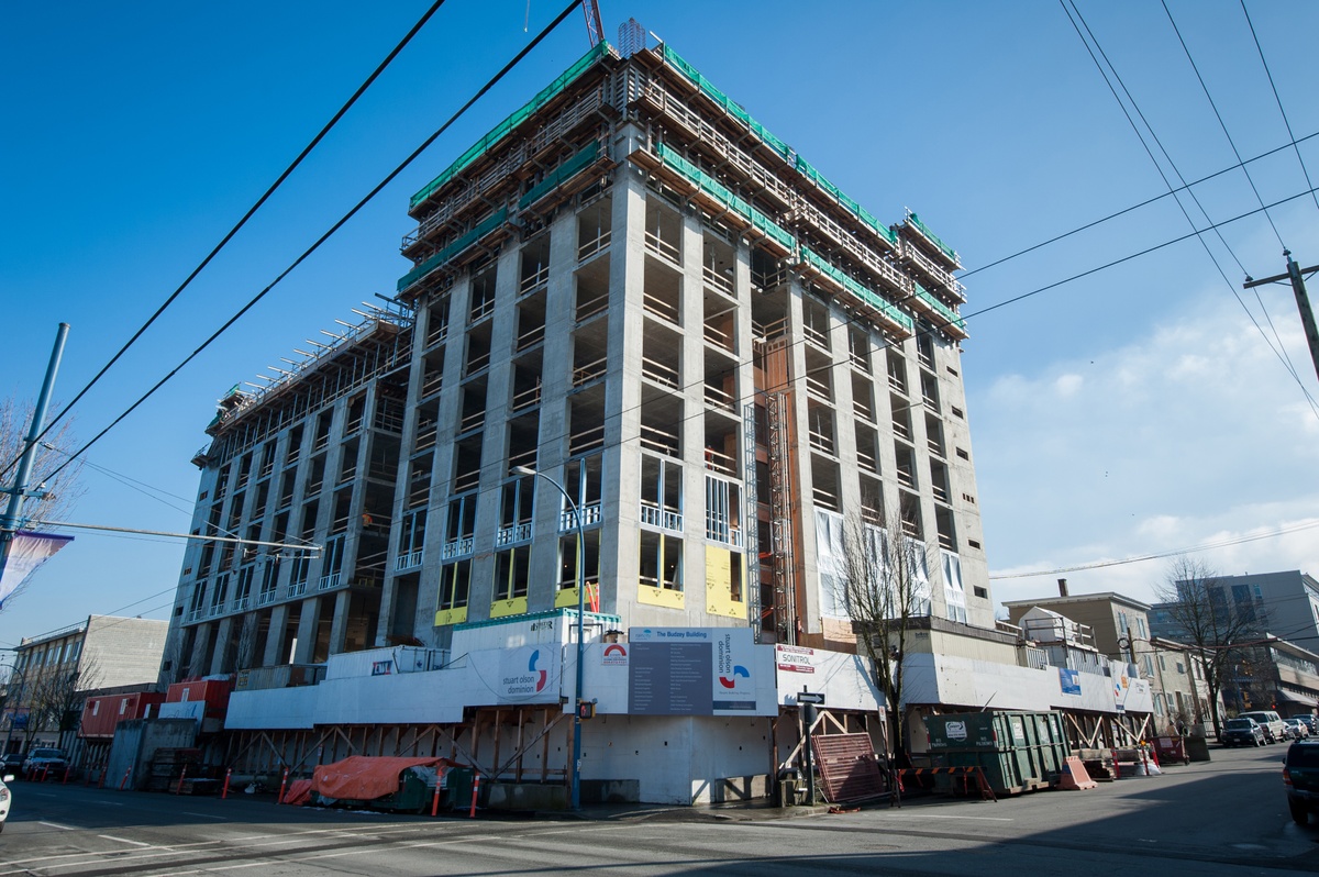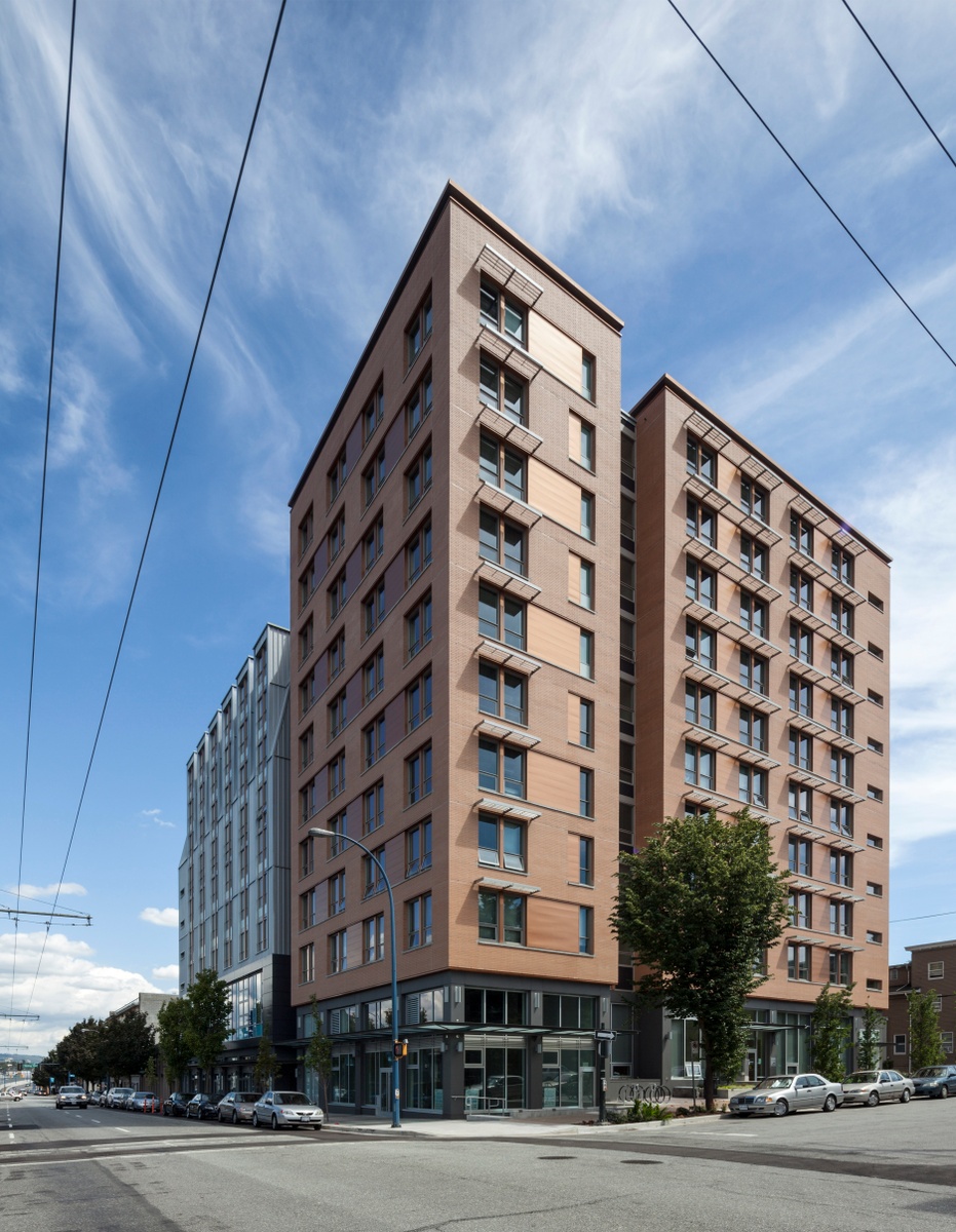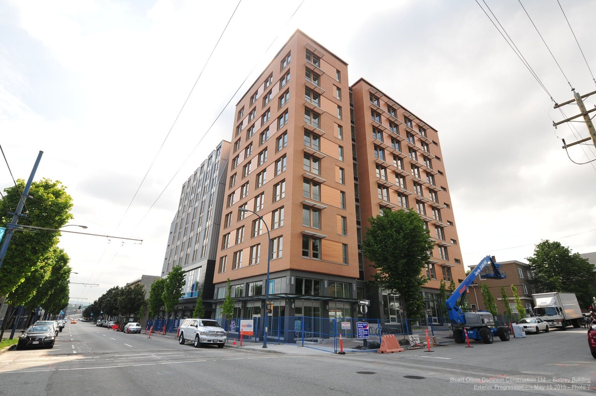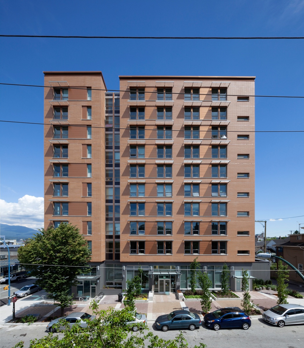 The Budzey Building is a 10 storey, 10,989 m2 multi-unit residential social housing development with ancillary support services and amenity spaces combined with secondary use leased spaces. The project is located on a site purchased by the City of Vancouver in 2007, which was identified as on one of the 12 City-owned sites to be reserved for social and supportive housing. Built as a home for women and women-led families who require supportive housing, the housing project is managed by RainCity Housing and Support Society. RainCity helps families address issues, which may include mental health concerns or substance abuse, through various programs and support services to build community and partnerships for tenants.
