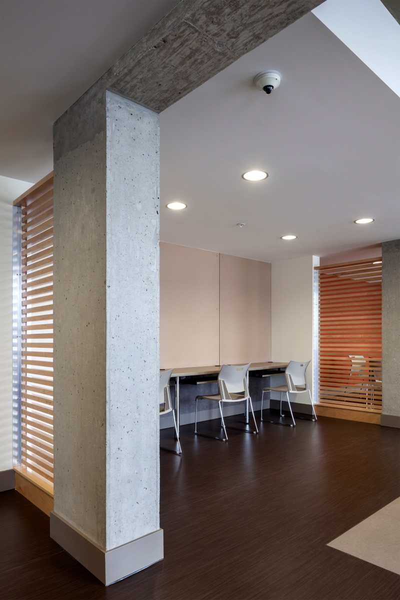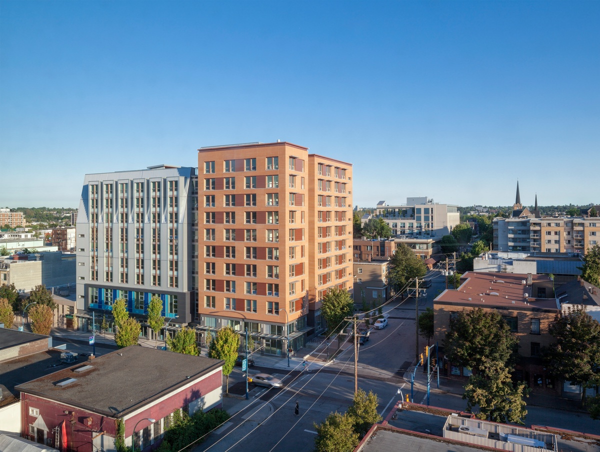Located at 220 Princess Ave in Vancouver, B.C., Budzey Building project contains 41 family units and 106 studio units, complete with amenity and ancillary areas. The dwelling units are self-contained with full washrooms and complete kitchen. Spaces were designed to be adaptable to changing dynamics such as children growing into adulthood, empty nesters, aging in place and changes in mobility due to illness or aging.