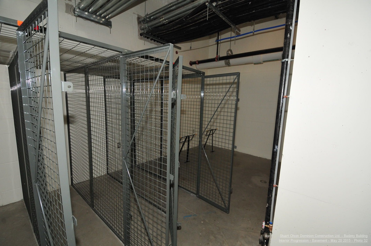 Like most new construction projects, the mechanical consultants on the Budzey building project ensured water saving fixtures were specified. The single flush low flow toilets in the building use only 4.8 litres per flush (1.28 gal/flush). Washroom faucets at Budzey run 1.9 liters of water per minute (0.5 gal/min), with kitchen sinks in kitchen running 5.7 l/min (1.5 gal/min). The showerheads flow water at 5.7 l/min (1.5 gal/min).