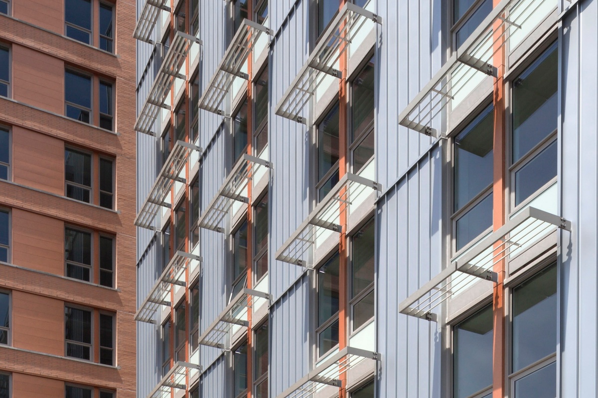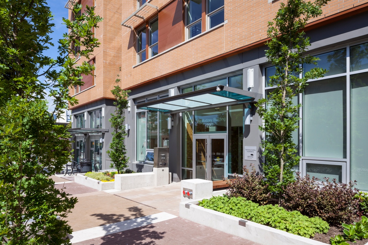 Passive design strategies were identified for the Budzey Building project in order to supplement the HVAC systems, reduce energy consumption and greenhouse gas emissions. Windows were sized and placed accordingly, in order to maximize the amount of natural light entering the building via apartment units and amenity spaces while simultaneously supplying natural ventilation with operable windows. Those units facing south have solar reflection integrated to reduce heat in summer.